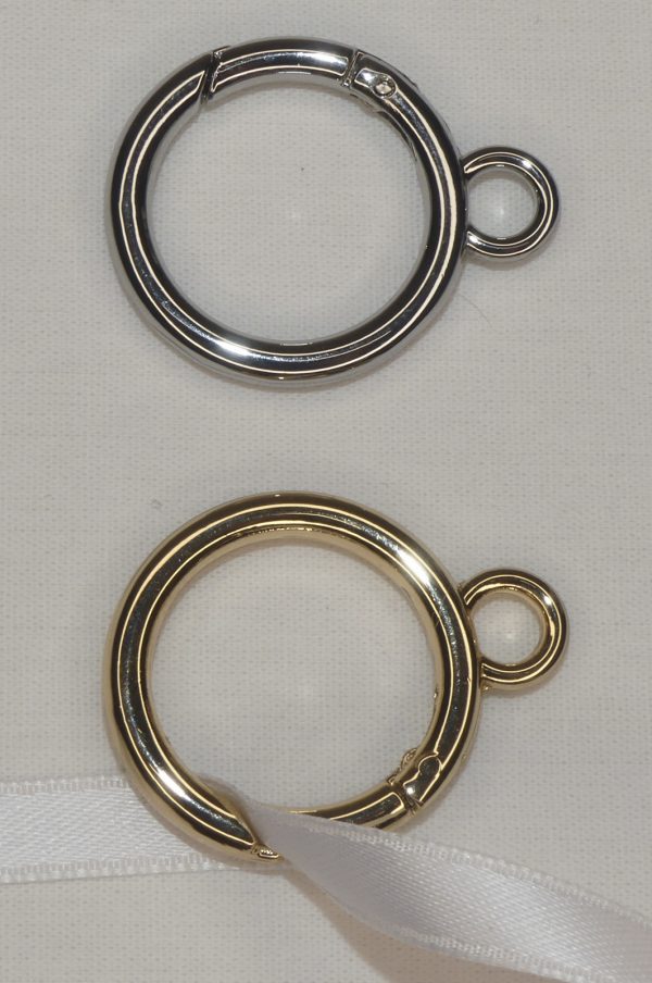 Anneau rond en métal sans nickel, avec ouverture et anneau. Épaisseur 3 mm. Diamètre 20 mm intérieur.