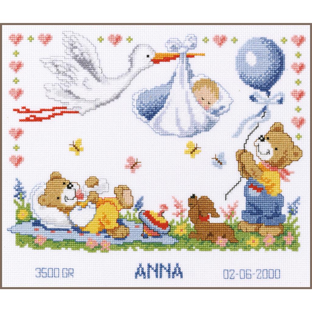 Kit au point de croix contenant diagramme, aiguille, fils avec toile aida blanche 5,5 pts/ cm