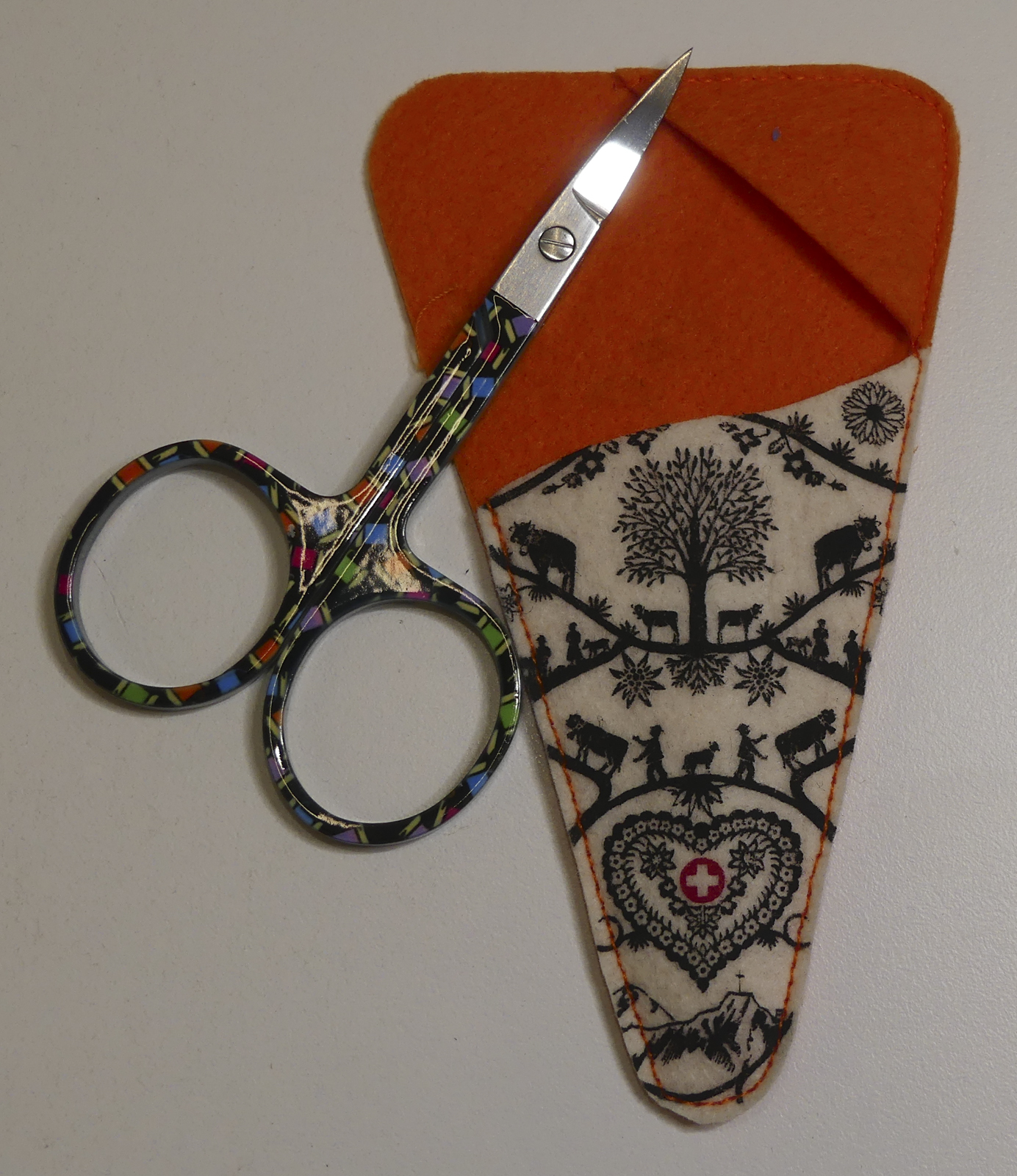 Ciseaux à broder fantaisie avec étui imprimé de 9 cm.