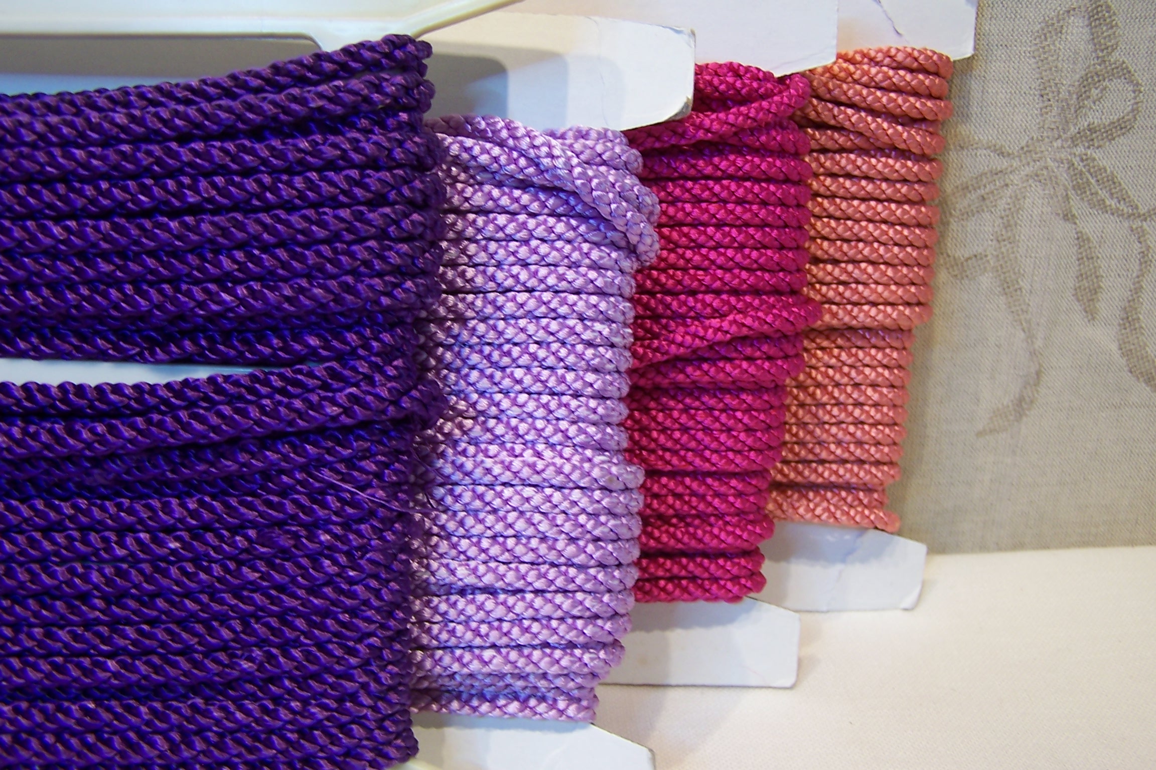 Cordelette en polyester existe en violet, mauve, fuschia et rose