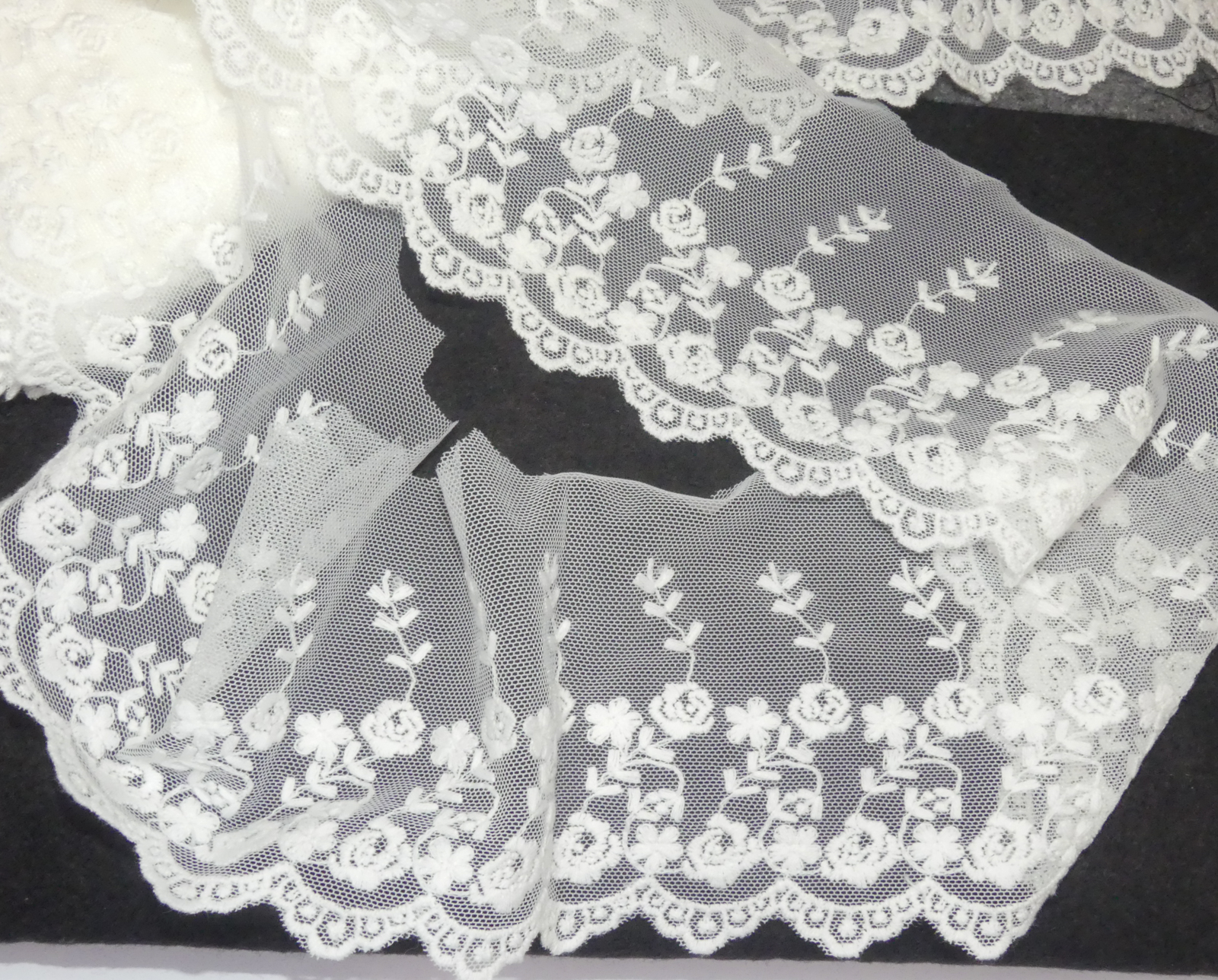 Dentelle fine blanche 100 % polyester lavage à 30 °