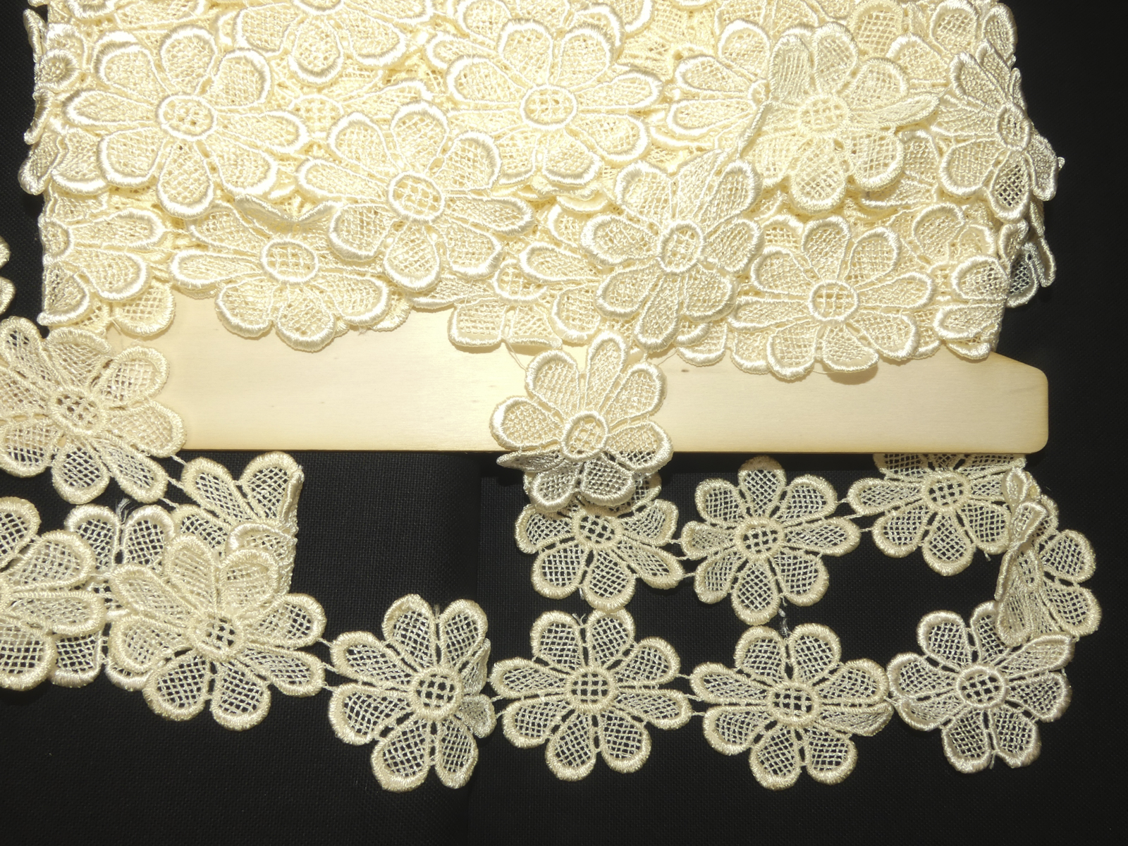 Galon dentelle fleur écrue. 100% polyester.