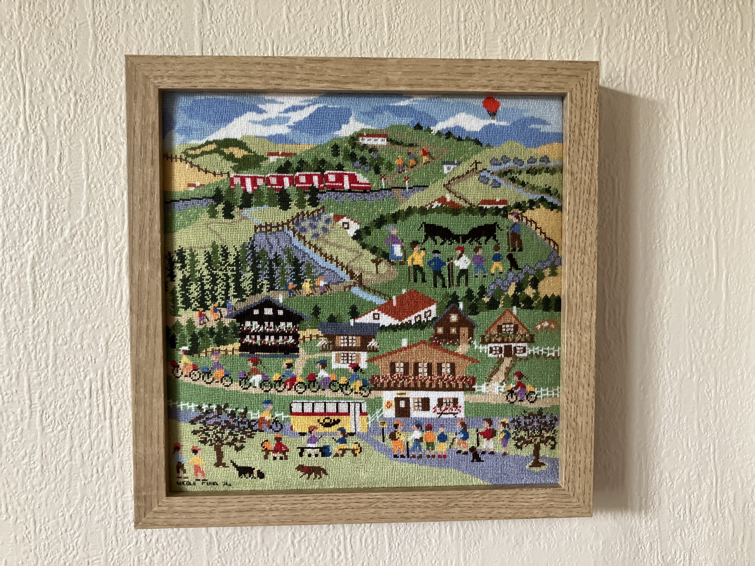 Kit au point de croix contenant diagramme, aiguille, fils avec toile de lin ou toile aida blanche