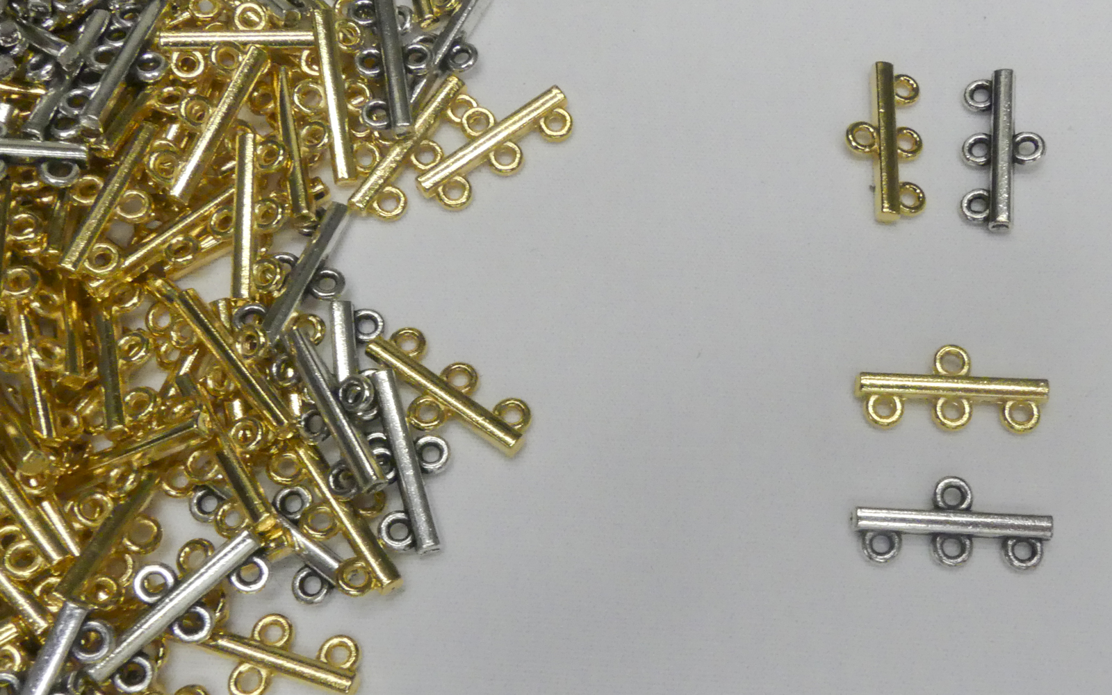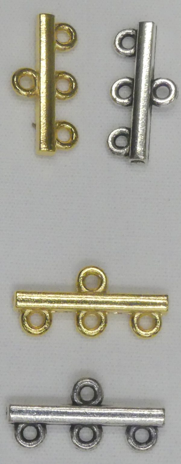 Fermeture pour bracelet ou collier 3 rangs en métal. Existe en doré ou argenté