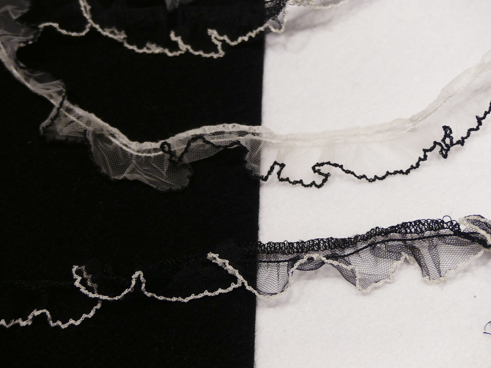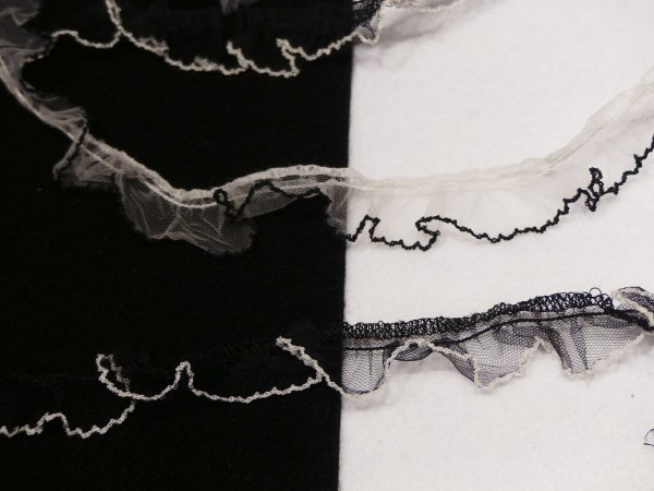Frange plissée en tulle existe en Blanc ou noir 100 % polyester lavage à 30 °