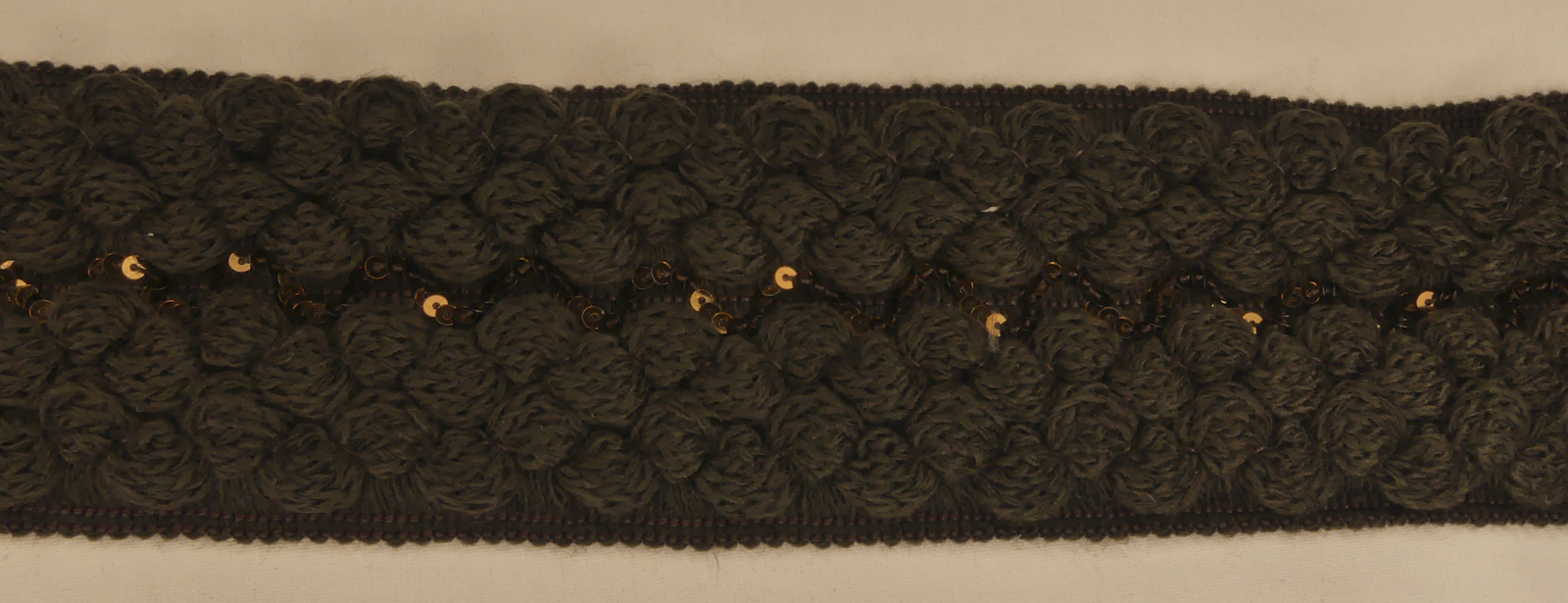 Galon en laine élastique marron avec paillettes marron. 80 % polyester 20 % élasthane