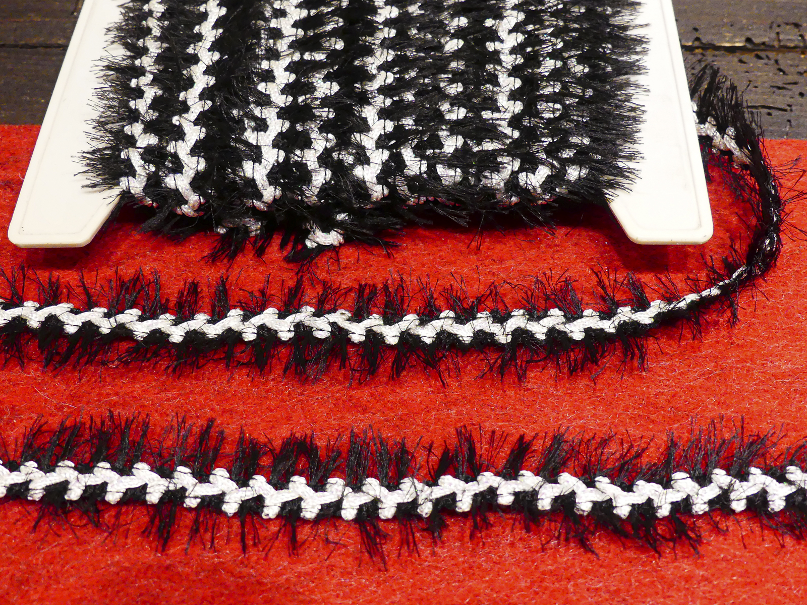 Galon blanc en lurex et petites franges noires lavage à 30 °
