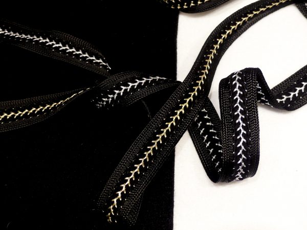 Galon noir argent ou noir doré 100 % polyester lavage à 30 °