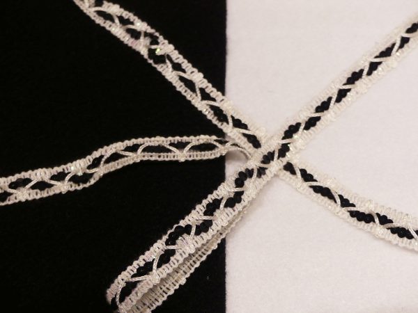 Galon blanc avec paillettes noires 100 % polyester lavage à 30 °