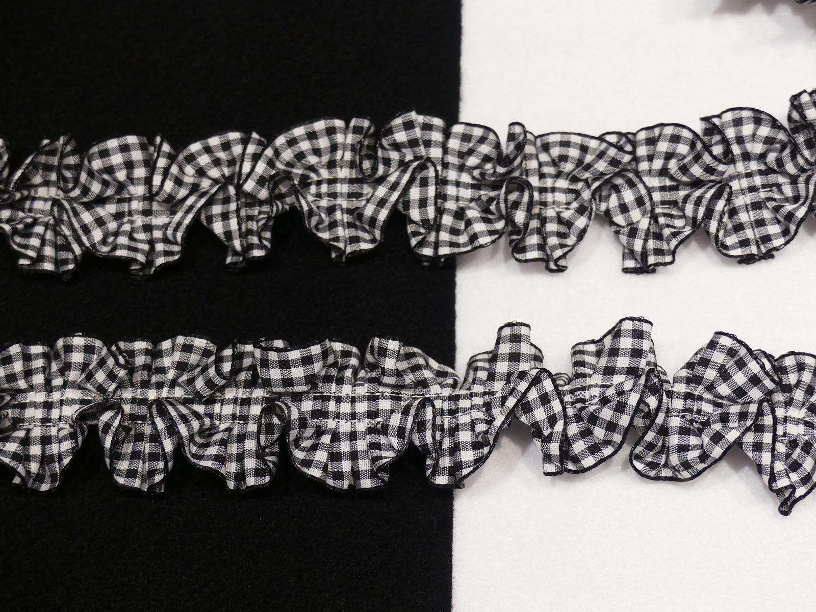 Galon frou-frou vichy noir et blanc 100 % polyester lavage à 30 °