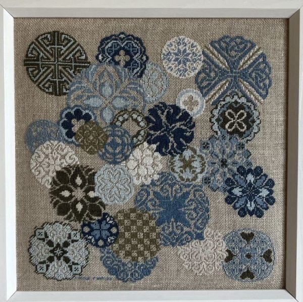 Kit au point de croix contenant diagramme, aiguille, fils avec toile de lin ou toile aida blanche