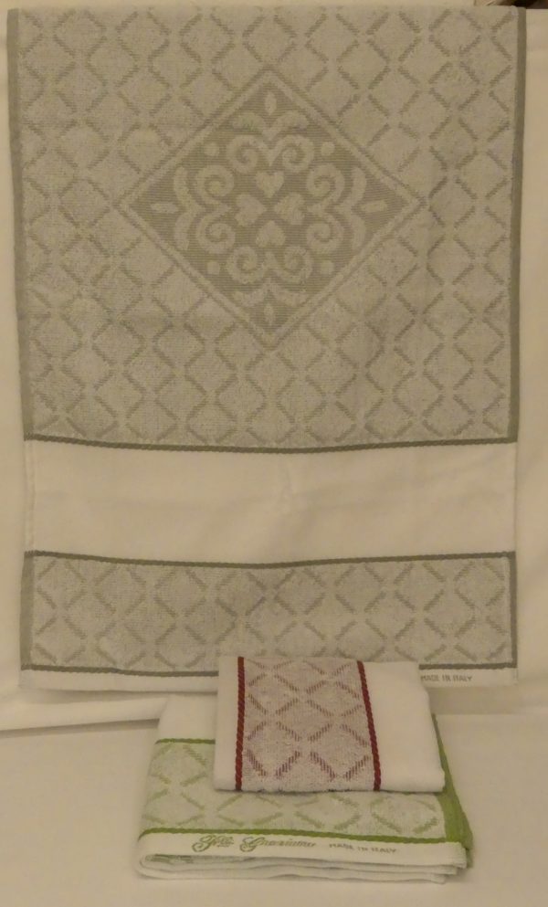 Serviette invité éponge peut être personnalisée, avec une bande Aida blanche 5.5 pts/cm en bas. Vous pouvez ainsi broder au point de croix un prénom, un motif ou les deux…