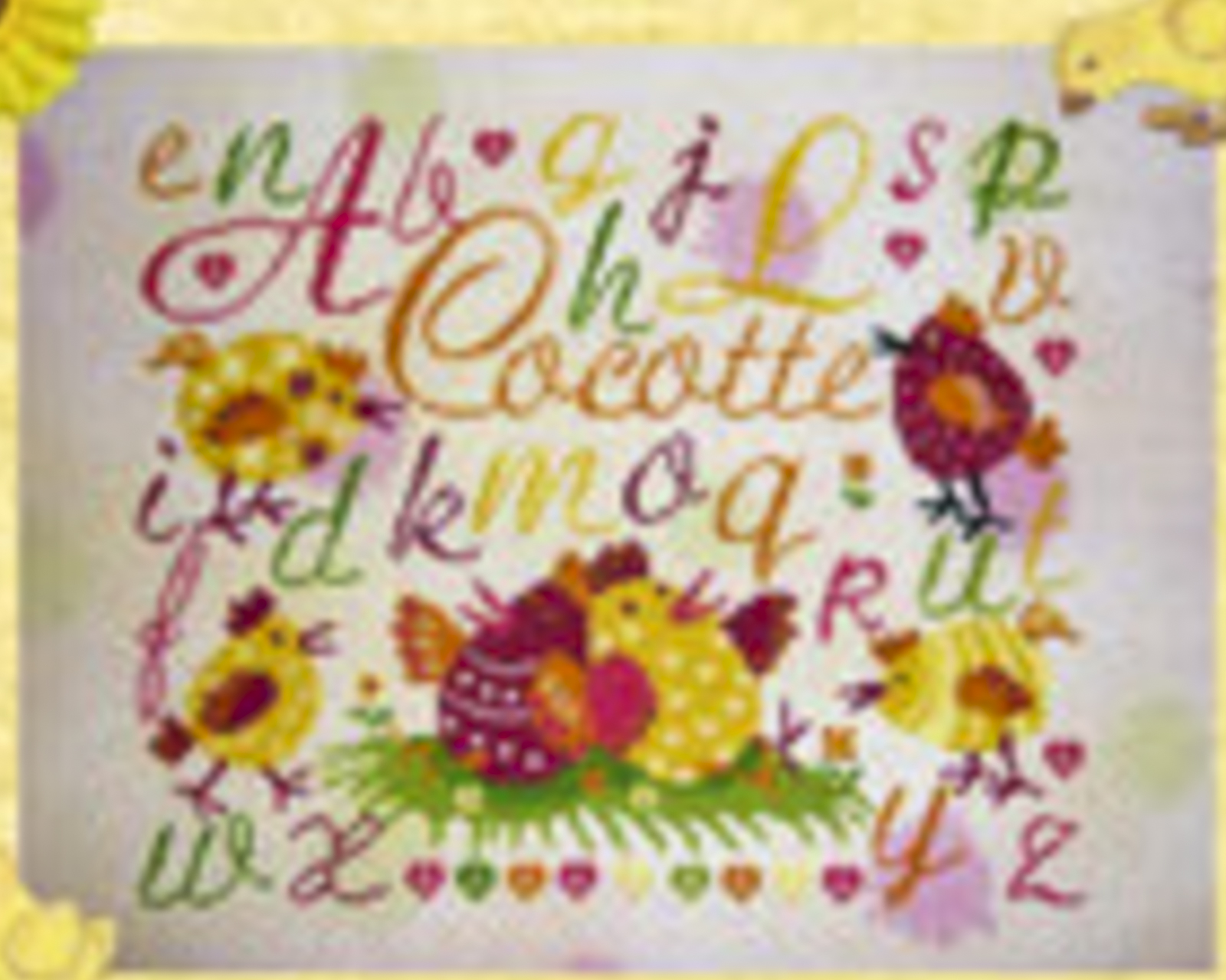 Kit au point de croix contenant diagramme, aiguille, fils et toile de lin verte
