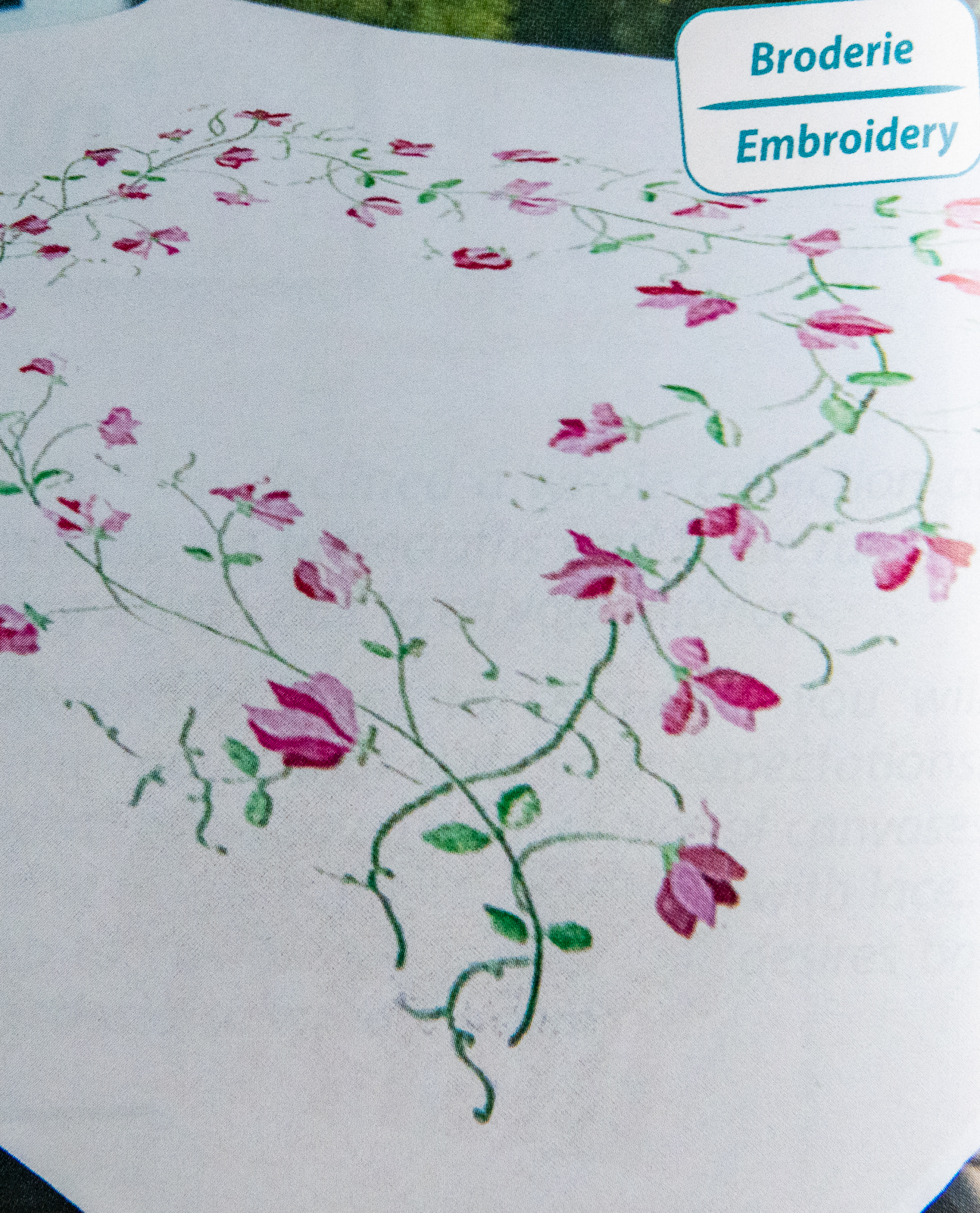 Les points utilisés sont le point de tige, le point de feston et le passé plat.