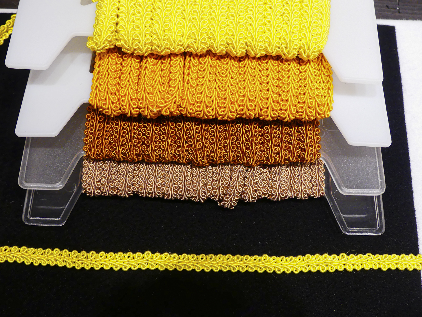Passementerie  existe en beige, rouille, orange, jaune 100 % polyester lavage à 30 °