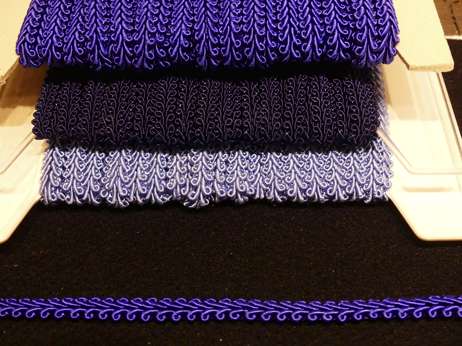 Passementerie existe en bleu, bleu marine, bleu roy 100 % polyester lavage à 30 °