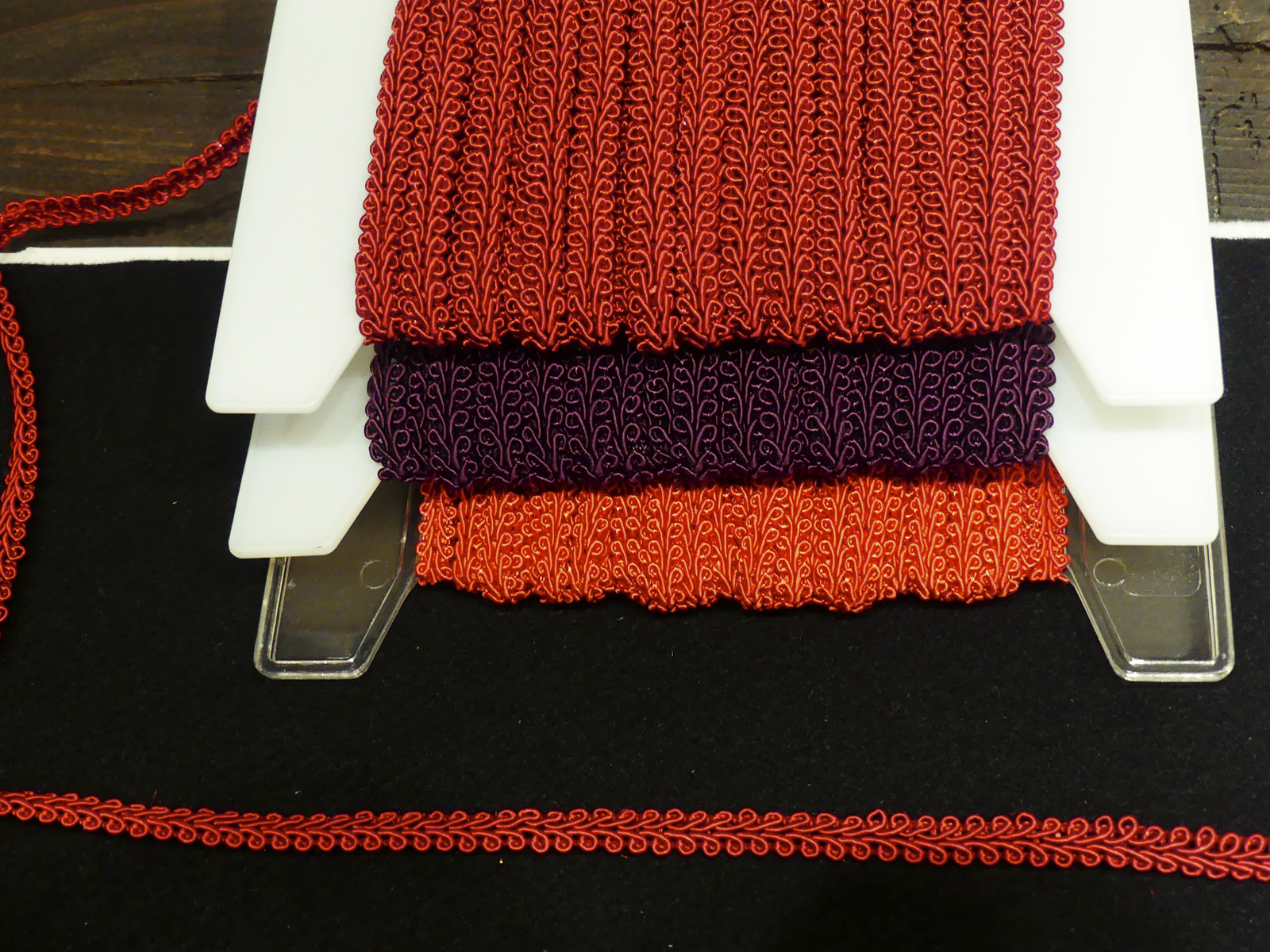 Passementerie existe en rouge, bordeaux, rouge foncé 100 % polyester lavage à 30 °