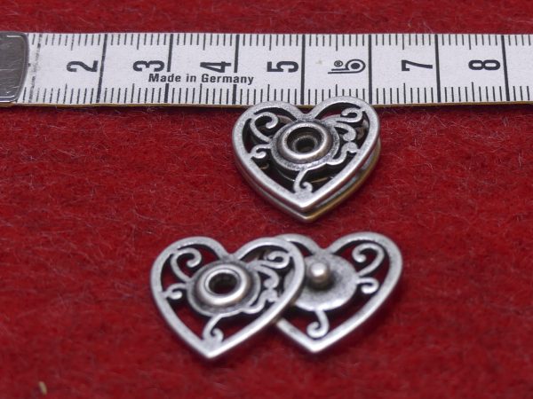 Pression à coudre en métal, coeur argenté. Existe en 20 mm ou 15 mm