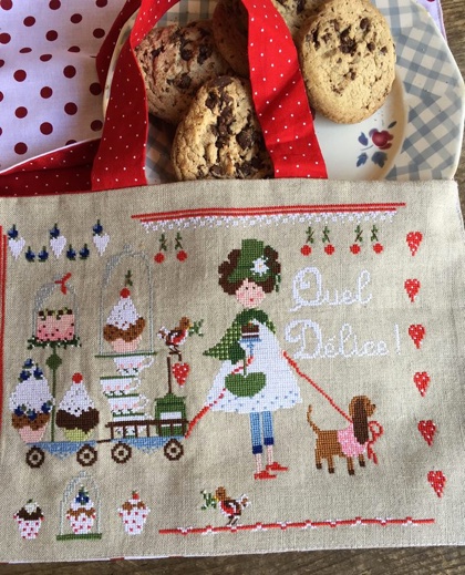 Kit au point de croix contenant diagramme, aiguille, fils et toile de lin ou aida
