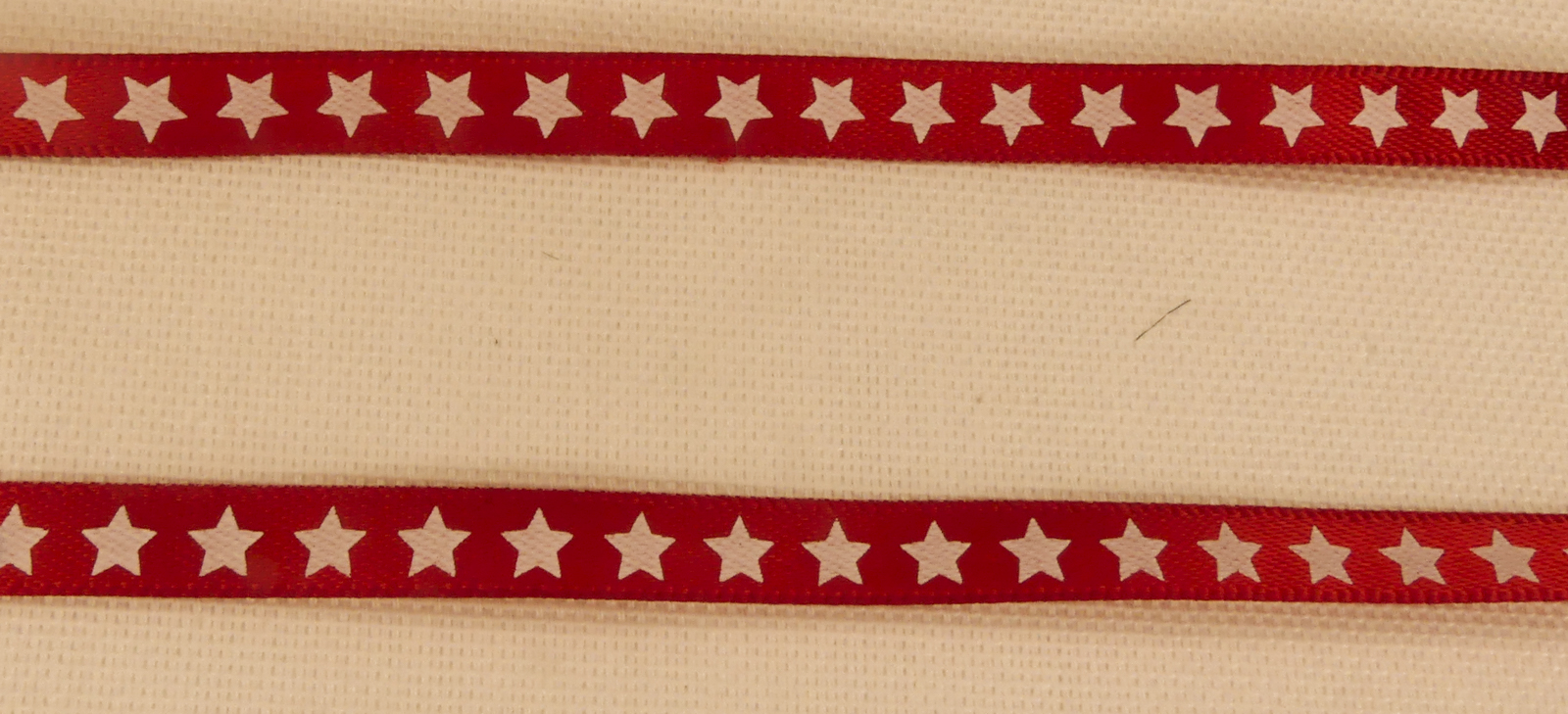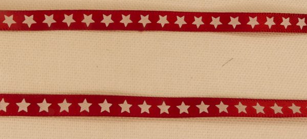 Ruban étoile blanche sur fond rouge. 100% polyester