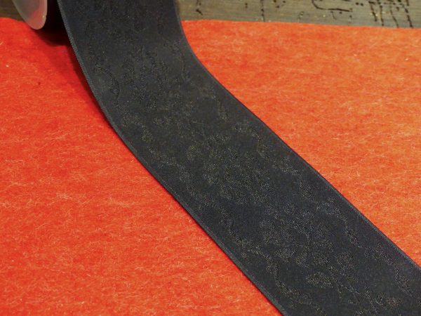 Ruban noir impression frise fleurs. 100 % polyester lavage à 40 °