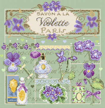 Kit au point de croix contenant diagramme en couleur, aiguille, fils et toile de lin vert